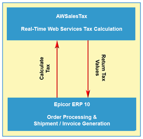 in Epicor ERP 10 AWSalesTax automatically does a Real-Time calculation to determine the correct tax rates.